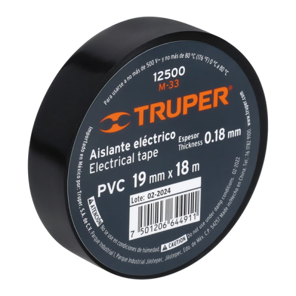 Cinta de aislante eléctrico color negro 19mm x 18m TRUPER 12500