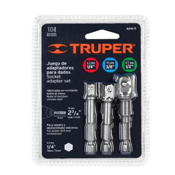 Juego de 3 adaptadores para dados de 1/4", 3/8" y 1/2" TRUPER 10752